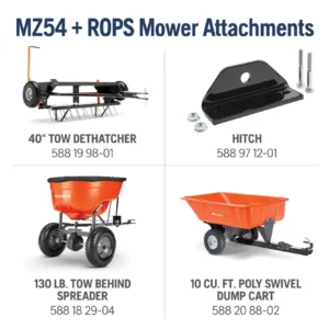 The Husqvarna MZ54 ROPS combines power and safety with its 24 HP Kawasaki FR Series engine, 54-inch ClearCut™ fabricated steel deck, and Roll Over Protection System. Designed for large properties, it ensures efficient mowing with enhanced operator comfort.