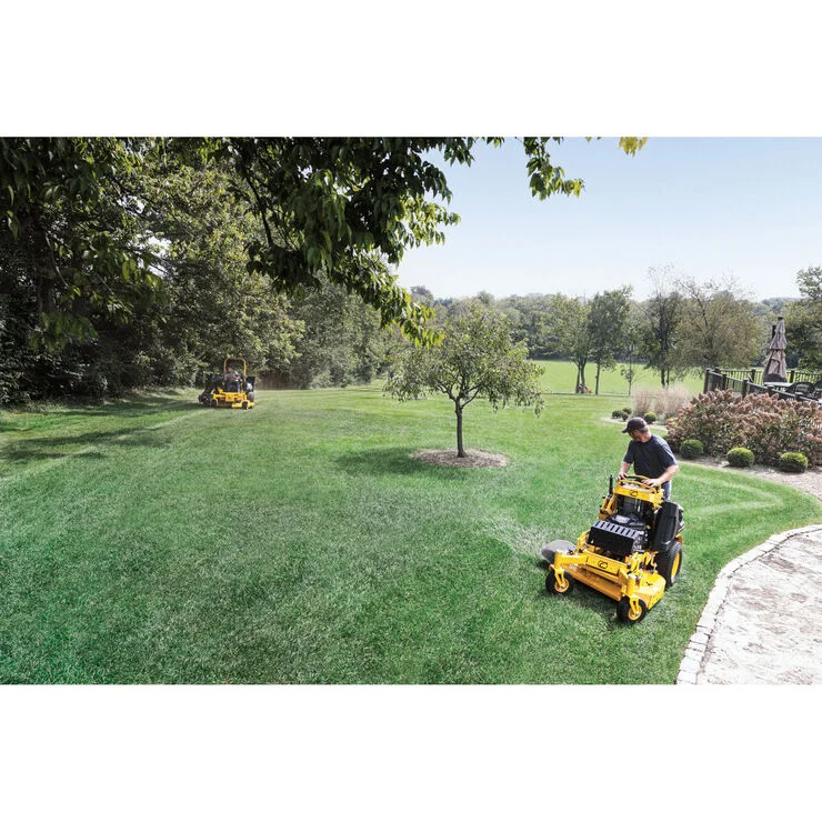 The Cub Cadet® PRO X 636 36-in. 18.5 HP* Commercial Stand-On Lawn Mower features a fully fabricated 10-gauge steel commercial deck shell with top, bottom and side reinforcements. Standard 21-in. tires are designed to give you ground clearance to easily hop on curbs. A large, fully adjustable suspension platform is engineered to allow you to glide comfortably through tough terrains.