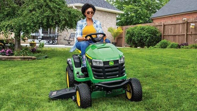 The John Deere S170 Lawn Tractor offers a 24 hp V-Twin Extended Life Series (ELS) engine, 48-inch Edge™ mower deck, and hydrostatic transmission with side-by-side pedals. Designed for comfort and efficiency, it’s perfect for lawns up to 2 acres.