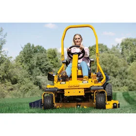 The Cub Cadet® Ultima Series ZTXS5 54 is a 54-inch zero-turn lawn mower with a 24 HP engine. It features an AeroForce™ Max reinforced fabricated deck, which is designed to provide a high-quality cut with few clumps and an even finish. The mower is made from 10-gauge reinforced steel and has low-maintenance spindles. Its smooth arc triple blades and deep dome deck design allow you to mow a wide area of grass. The Synchro-Steer™ technology provides 4-wheel control for better stability when mowing on hills and slopes up to 20 degrees.